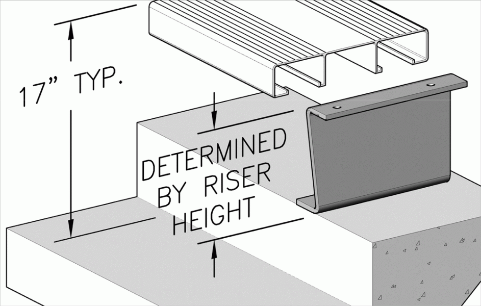 Z Bracket attached to cemenbt stair style bleachers systems to anchor aluminum seat planking.
